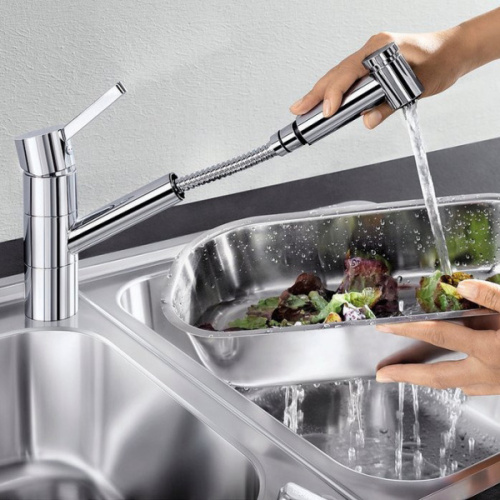 Смеситель для кухонной мойки Blanco Tivo-S – удобная модель с выдвижным изливом. Устройство предлагается в каталоге бренда с разными цветами корпуса: