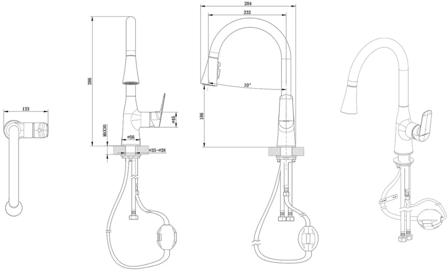 Смеситель для кухни Bravat Rhein с вытяжным изливом F7460564CP-ENG