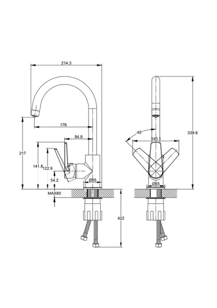 | Тип излива | С поворотным изливом, С коротким изливом |