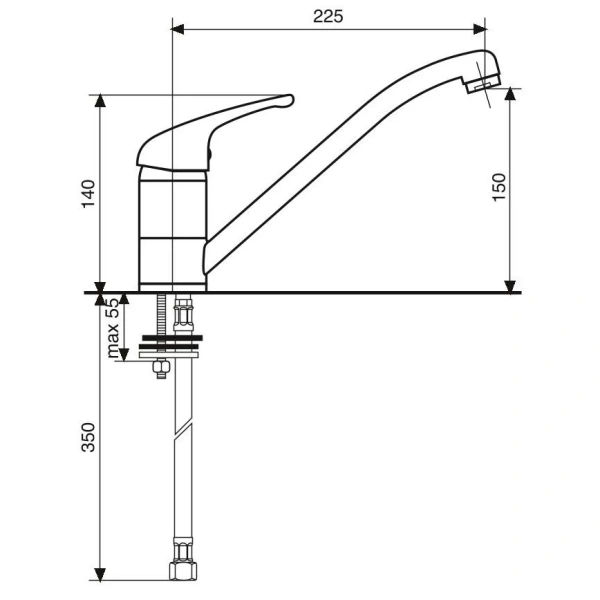 Смеситель для кухни Emmevi Winny 95007 имеет современный дизайн и устанавливается на горизонтальную поверхность под одно отверстие. Длина излива составляет 22,5 см, этого достаточно для удобного пользования каждый день. Ручка одна, металлическая. Качественная модель имеет хромированную поверхность, блеск которой поддерживается простыми способами.