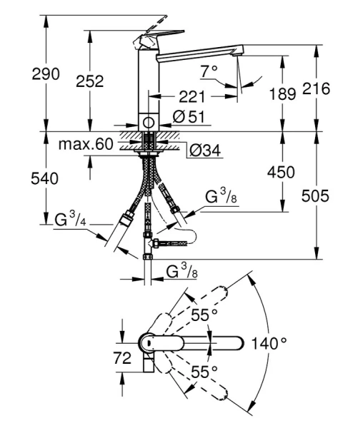 Смеситель для кухни Grohe Eurosmart Cosmopolitan 30195000