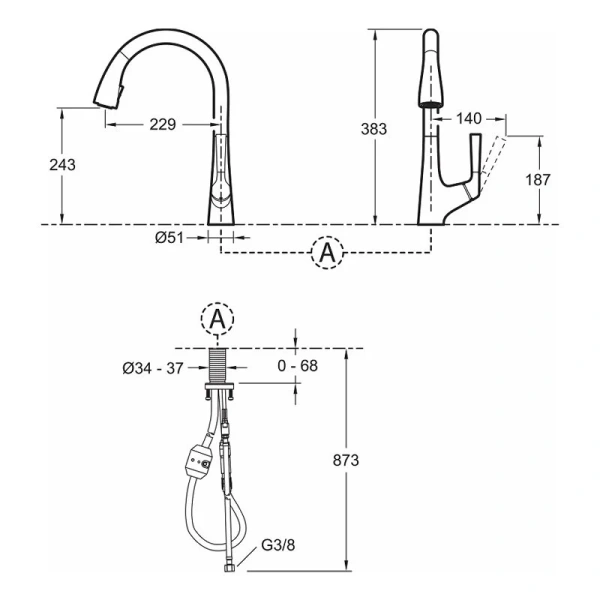 | Тип излива | С поворотным изливом, C выдвижным изливом (лейкой) |