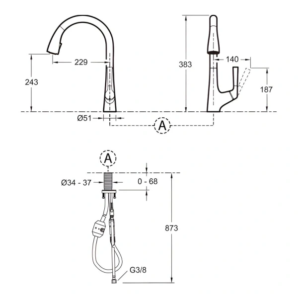 | Тип излива | С поворотным изливом, C выдвижным изливом (лейкой) |