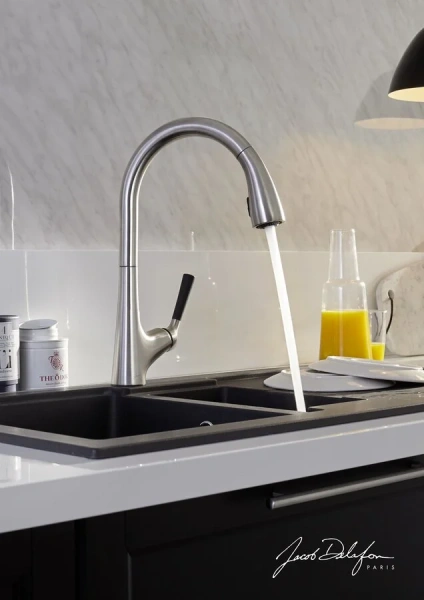Смеситель для кухни Jacob Delafon Malleco E562-VS — стильный и функциональный выбор для вашей кухни. Матовая сталь придаёт современный и элегантный вид. Высота излива 24,3 см и длина 22,9 см обеспечивают комфортное использование. Керамический картридж гарантирует точную регулировку потока воды с расходом 6 л/мин. Гибкая подводка с стандартом 3/8" облегчает установку. Вес — 2,4 кг. Отличное решение для бытового применения с долговечностью и стилем.