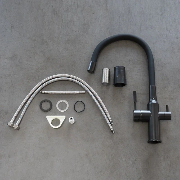 Смеситель для кухни Lemark Expert чёрного цвета — это стильное и функциональное решение для вашей кухни. Керамический картридж Sedal Cold Start Mirror 35 мм обеспечивает плавное и точное регулирование температуры и напора воды. Комбинированный аэратор позволяет использовать водопроводную и питьевую воду. Для крана с питьевой водой предусмотрена керамическая кран-букса с углом поворота 90°. Металлические рукоятки гарантируют надёжность и долговечность изделия.