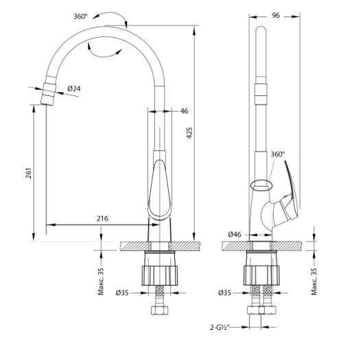 | Тип излива | С поворотным изливом, С длинным изливом, С гибким изливом |