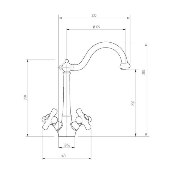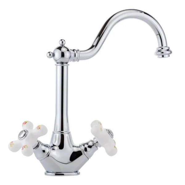 Смеситель для кухни Migliore Provance ML.CUC-8851 имеет вентильный тип управления. Излив – поворотный, с аэратором. Устройство предназначено для кухонной мойки и монтируется в ее бортик или в столешницу. Для этого требуется одно отверстие. Ручки управления – керамические, с орнаментом. Модель представлена в каталоге в цветах хром (cr), бронза (br) и золото (do), поэтому легко подобрать оптимальный вариант под остальные кухонные аксессуары и мебельную фурнитуру. Донный клапан и установка фильтра не предусмотрены.