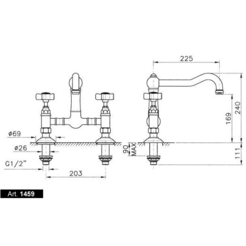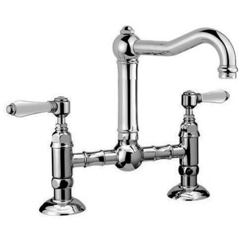 Смеситель для кухни Nicolazzi D.Anglaises 1459 смеситель для кухни предназначен для горизонтального монтажа под два отверстия. Модель оснащена качественным механизмом и двумя вентильными ручками. При желании предлагаемые ручки можно заменить на другие по форме и цвету. Длина излива составляет 22,5 см. Выпускается в широком цветовом диапазоне.