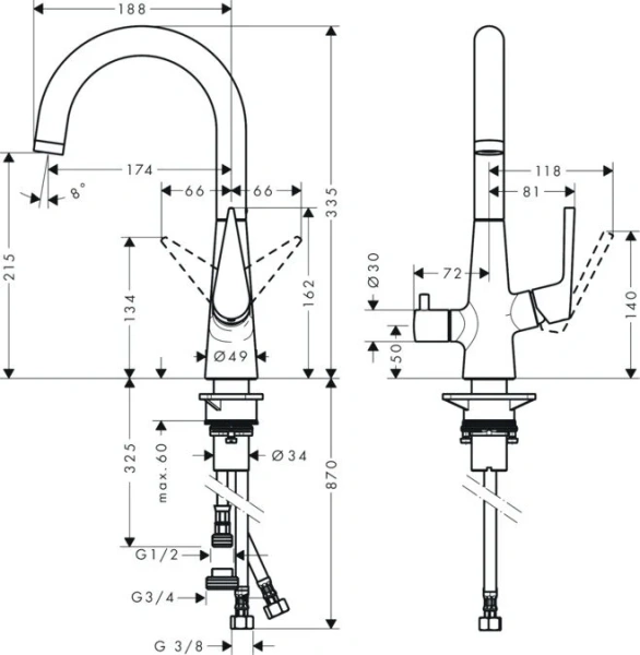 Смеситель для кухни однорычажный Hansgrohe Talis S 220 хром 72811000