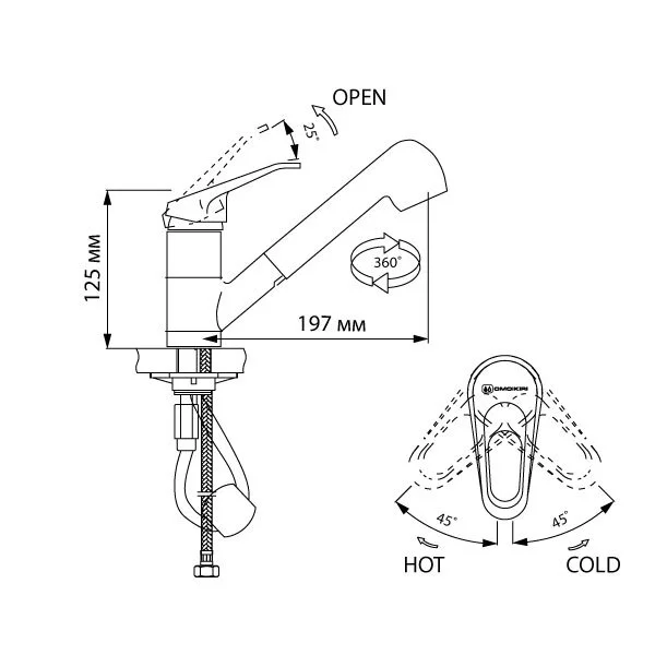 Смеситель для кухни Omoikiri Takayama-S с выдвижным изливом, хром OTA-CR-40