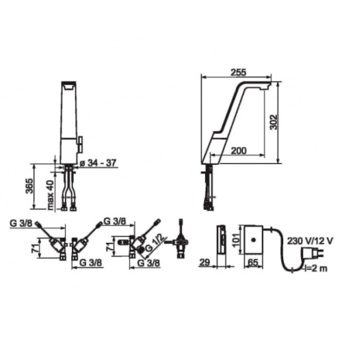 Смеситель для кухни с поворотным изливом и Smart клапаном для посудомоечной машины. Открывается мягким нажатием на верхнюю поверхность-поток воды открыт в течение 6 сек. При нажатии в течение одной секунды поток воды остается открытым в течение одной минуты. При нажатии в течение 4 секунд запускается режим очистки- смеситель закрыт в течение 20 секунд. Регулятор температуры на рукоятке используется также как регулятор потока. Смеситель может быть открыт с помощью регулятора температуры для получения горячей или холодной воды без автоматической функции. Smart клапан для посудомоечной машины может быть открыт на 3 или 12 часов. В этом случае закрывается автоматически через 5 мин., если не был закрыт ранее вручную. Работает от трансформатора 230/12 В (входит в комплект поставки). Дизайн Родриго Торрес.
