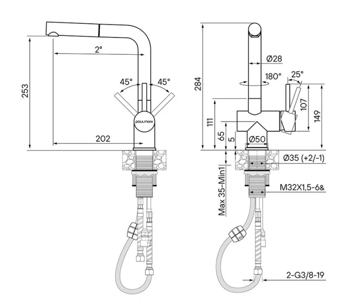 Смеситель для кухни Paulmark Dosse Do214418 с выдвижным шлангом