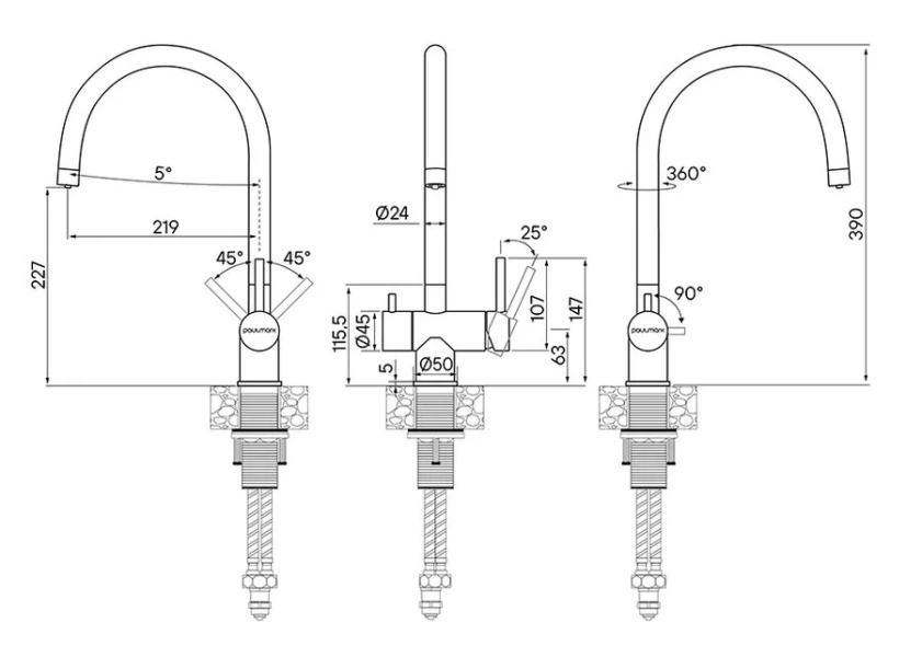 | Тип излива | С поворотным изливом |
