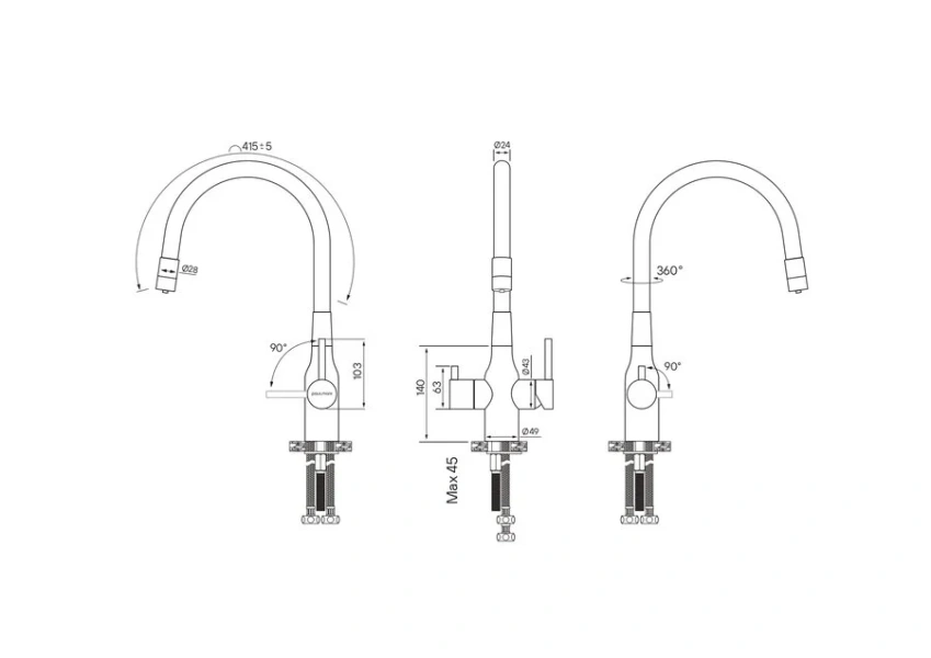 | Тип излива | С поворотным изливом, С гибким изливом |