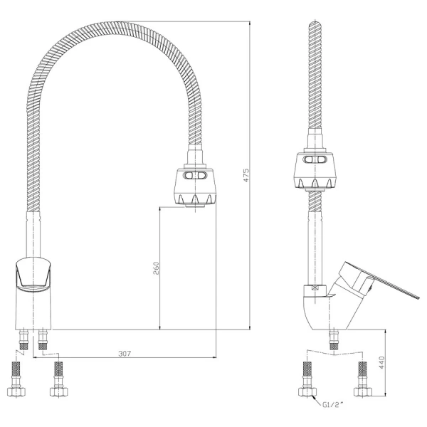 Смеситель для кухни Rossinka S с гибким изливом S35-26