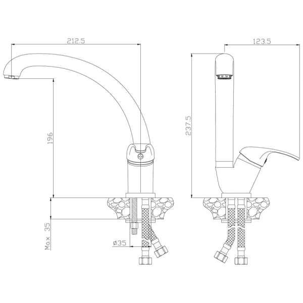 Однорычажный смеситель для кухни Rossinka Y модели Y35-23 имеет поворотный излив и оснащён пластиковым аэратором с функцией лёгкой очистки. Керамический картридж диаметром 35 мм обеспечивает точную регулировку напора и температуры воды ,а металлическая рукоятка делает управление смесителем удобным и надёжным. Глянцевая поверхность смесителя устойчива к загрязнениям и проста в уходе. В комплекте идут гибкие соединительные шланги длиной 30 см.