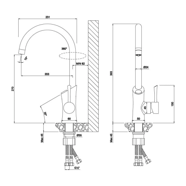 • устанавливается на одно отверстие на край чаши или на столешницу;
