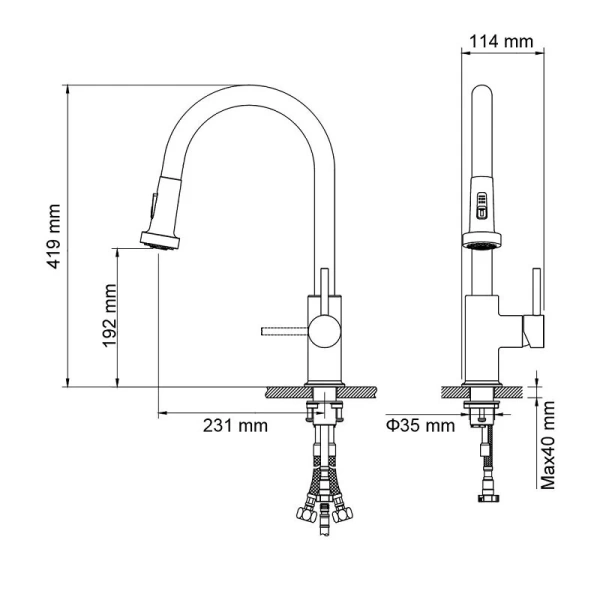 | Тип излива | С поворотным изливом, C выдвижным изливом (лейкой) |