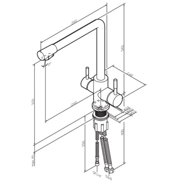 Смеситель для питьевой воды Am.Pm X-Joy S F85B05700 — элегантное и удобное решение для кухни. Оснащён керамическим картриджем для плавного регулирования потока. Глянцевое покрытие придаёт стильный вид и легко очищается. Гибкая подводка стандарта G 3/8 упрощает установку. Излив длиной 24,5 см и высотой 31 см удобен для наполнения больших ёмкостей. Аэратор SoftFlow формирует мягкий поток воды при расходе 8,5-9,5 л/мин, обеспечивая комфортное использование и экономию воды.