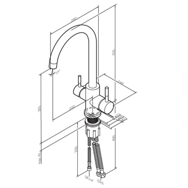 Смеситель для питьевой воды Am.Pm X-Joy S F85B07700 — стильное и практичное решение для кухни. Оснащён керамическим картриджем для плавного регулирования потока. Глянцевое покрытие придаёт современный вид и легко очищается. Гибкая подводка стандарта G 3/8 упрощает установку. Излив длиной 22 см и высотой 26,5 см удобен для наполнения ёмкостей. Аэратор SoftFlow обеспечивает мягкий поток воды при расходе 5-6 л/мин, гарантируя комфортное использование и экономию.