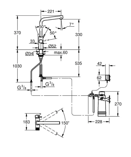 Смеситель для кухни Grohe Blue Pure 30589000 — функциональное решение с подачей фильтрованной воды. Оснащён отдельной рукояткой и фильтром GROHE Blue (размер S) для улучшения вкуса и умягчения воды. Керамический картридж 28 мм обеспечивает точное управление. Поворотный излив 150°, длина 22,1 см, высота 33 см. Глянцевая поверхность с долговечным покрытием GROHE Long-Life Finish. В комплекте счётчик ресурса фильтра и 2 батарейки AA.