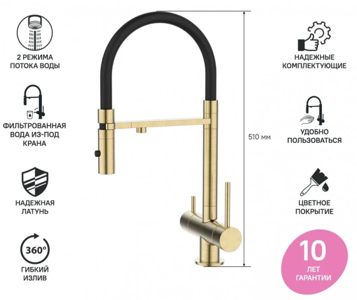 | Дополнительные свойства | Высокие, Из латуни, Округлая форма, С фильтром для питьевой воды |