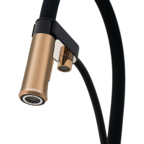 Смеситель для питьевой воды Lemark Bronx LM3761BLR черный/золото сочетает стильный дизайн и функциональность. Длина излива — 22.8 см, высота — 20.7 см. Оснащён керамическим картриджем Sedal Cold Start Termaclick Mirror 35 мм и аэратором Neoperl Perlator для питьевой воды. Подача питьевой воды осуществляется через отдельный излив с рычагом управления. Также имеется режим душа излива. Подводка гибкая, стандарт 1/2". Матовая и глянцевая поверхность добавляют элегантности, идеально для бытового использования.