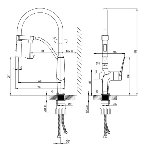 | Тип излива | С поворотным изливом, С длинным изливом, С двумя изливами, С гибким изливом |