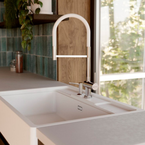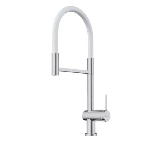 Смеситель Omoikiri Kanto 2 Plus-SB BN 4994450 в цвете белый/нержавеющая сталь сочетает стиль и функциональность. Совмещённый излив (24,6×22 см) с поворотом на 360° обеспечивает удобство в использовании. Питьевая и водопроводная вода подаются через один рычаг, а пластиковый аэратор гарантирует мягкий поток. Матовая поверхность, гибкая подводка в оплётке из нержавеющей стали и надёжный керамический картридж обеспечивают долговечность.