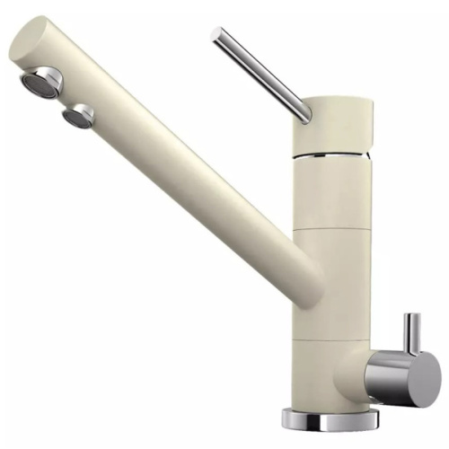Смеситель для питьевой воды Omoikiri Tonami BE 4994059 в оттенке ванили гармонично сочетает матовую и глянцевую поверхности. Оснащён дополнительным изливом для подачи фильтрованной воды и отдельным рычагом управления. Излив длиной 20,8 см и высотой 15,6 см поворачивается на 360°. Керамический картридж 35 мм, пластиковый аэратор, гибкая подводка 1/2" в оплётке из нержавеющей стали. Монтажное отверстие — 35 мм. Для бытового применения.