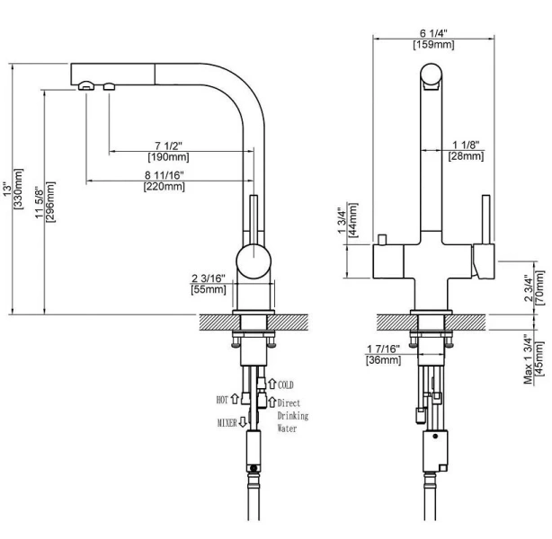 Смеситель для питьевой воды Timo Saona 2356/03FL – удобное и функциональное решение для кухни. Оснащен двумя изливами: основной (29,6 см в высоту, 22 см в длину) и дополнительный для подачи питьевой воды, управление которым осуществляется отдельным рычагом. Надежный керамический картридж 35 мм гарантирует долговечность, а аэратор обеспечивает мягкий поток. Режим «душ» добавляет комфорта. В комплекте гибкая подводка (1/2") и крепления. Идеален для бытового использования.