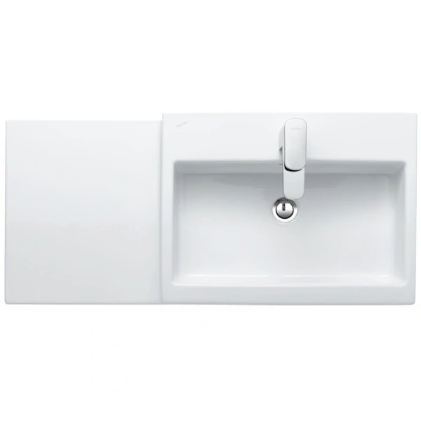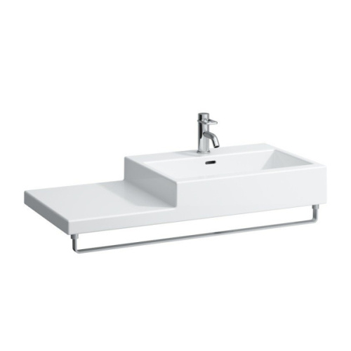 Столешница под умывальник Laufen Living City 8.1843.1.000.104.1 100х46х15.5 см – это прямоугольная раковина с полочкой слева или справа. Она устанавливается отдельно или вместе с тумбой, причем шкафчик может располагаться только под полочкой или по полной ширине. Мебельная столешница сделана из керамики, она белая, глянцевая. Можно выбрать модель с декором на полке: стрекоза, бамбук, алоэ, магнолия и др. Есть чаши с одним, тремя или без отверстий для смесителя. Дополнительно предлагается полотенцедержатель шириной с раковину или во всю столешницу.